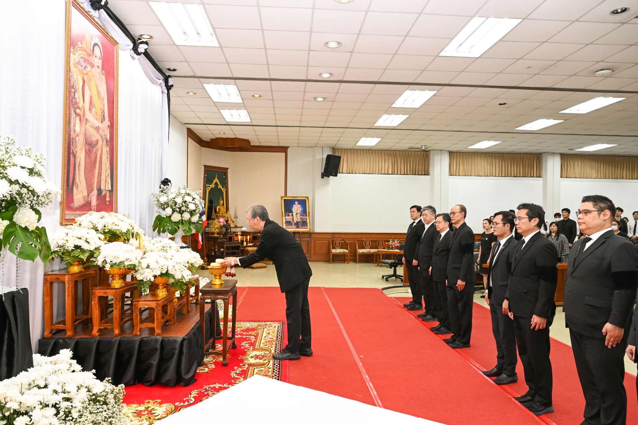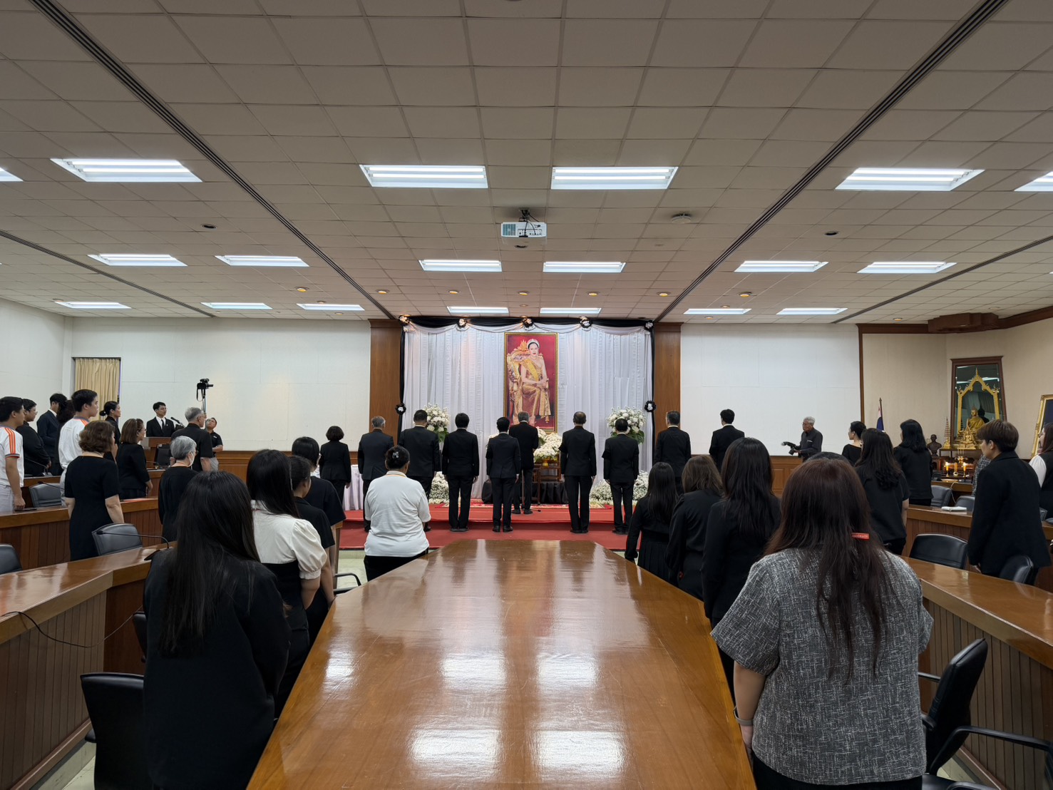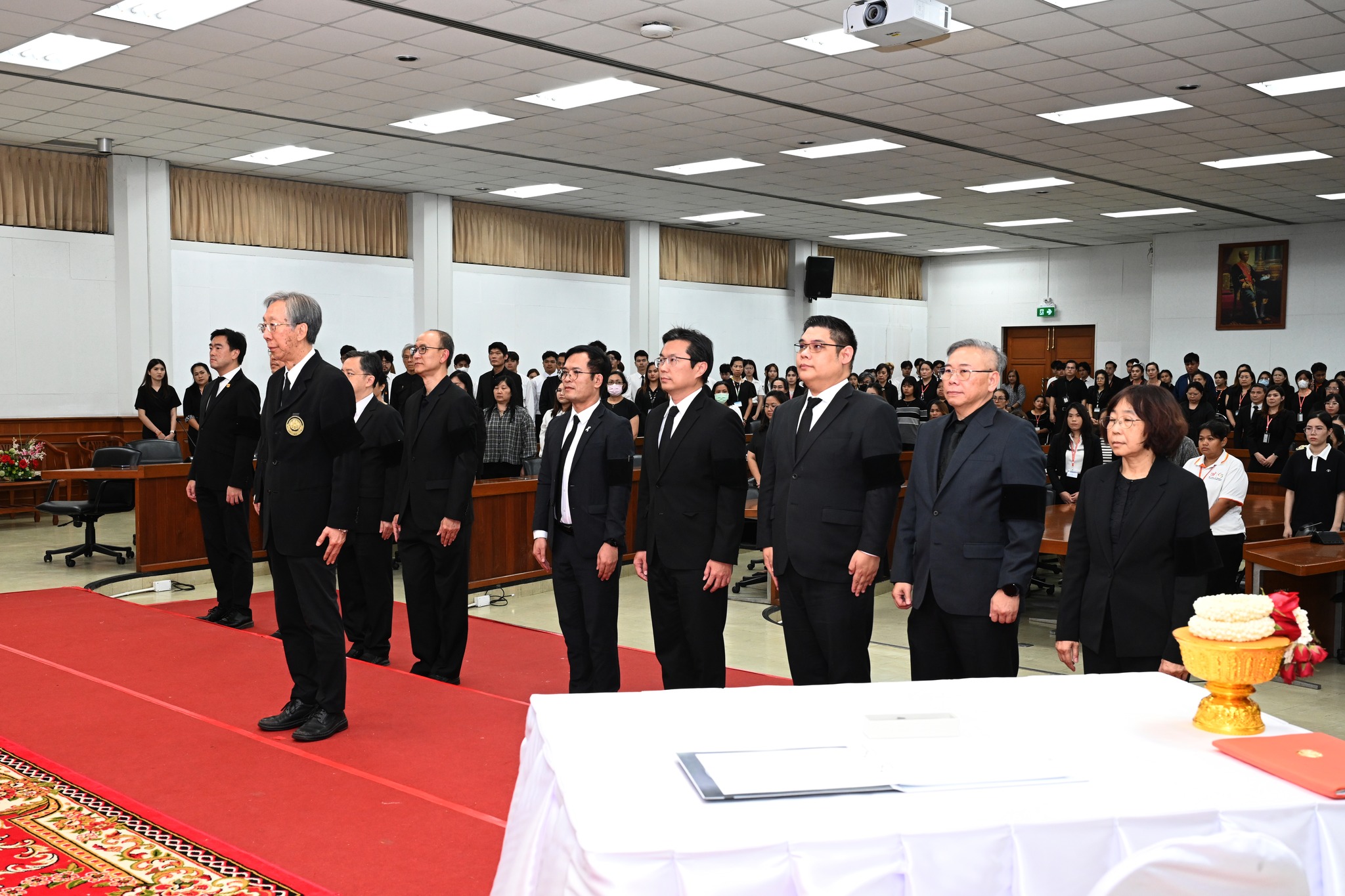 ทั้งนี้ พิธีดังกล่าวจัดโดยมหาวิทยาลัยเทคโนโลยีพระจอมเกล้าธนบุรี โดยมี รศ. ดร. สุวิทย์ แซ่เตีย อธิการบดี เป็นประธานในพิธี กล่าวน้อมรำลึกในพระมหากรุณาธิคุณอันหาที่สุดมิได้ และนำคณะผู้บริหาร คณาจารย์ บุคลากร นักศึกษา และนักเรียน ร่วมน้อมเกล้าน้อมกระหม่อมถวายสักการะ พร้อมทั้งยืนสงบนิ่ง และร่วมลงนามแสดงความอาลัยหน้าพระฉายาลักษณ์ โดยพร้อมเพรียงกัน
