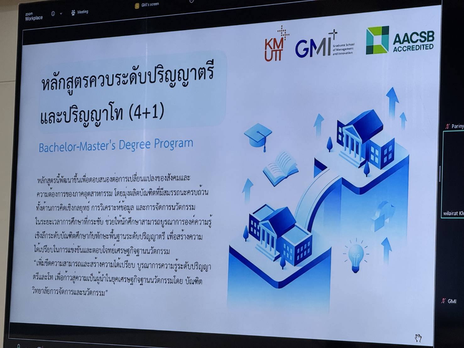 บัณฑิตวิทยาลัยการจัดการและนวัตกรรม (GMI) มจธ. นำเสนอความร่วมมือคณะวิทยาศาสตร์ เปิดตัวหลักสูตรควบปริญญาตรี-โท BMD 4+1 ปั้นผู้นำนวัตกรรมยุคใหม่