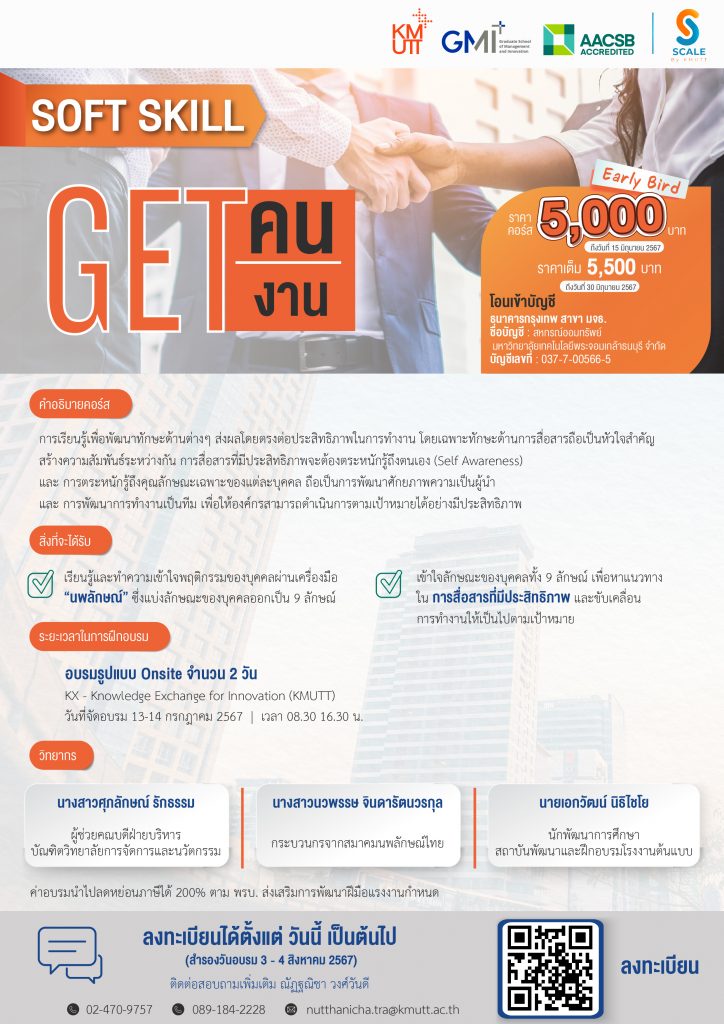 สถานที่อบรม : อาคาร KX Knowledge Exchange for Innovation (KMUTT)